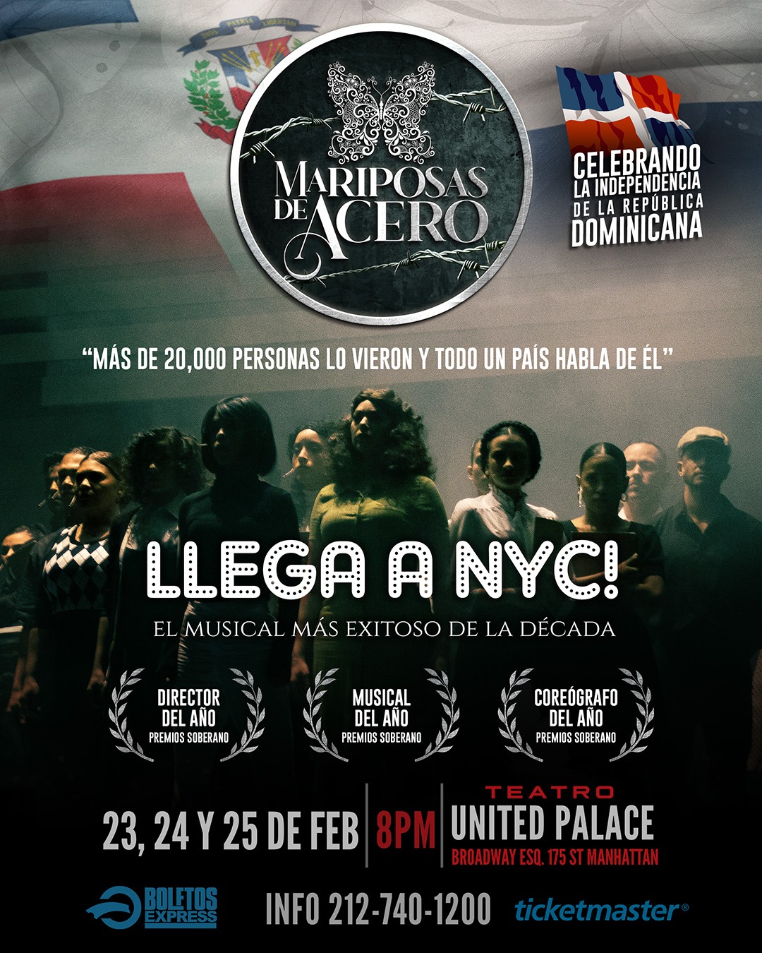 Nueva York, NY – El icónico Teatro United Palace de la ciudad de Nueva York se prepara para recibir el musical “Mariposas de Acero”. Este emocionante y conmovedor montaje, que narra la vida de las Hermanas Mirabal, heroínas dominicanas asesinadas por el régimen de Rafael Leónidas Trujillo Molina, ya ha sido aplaudido por más