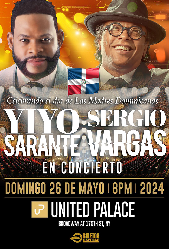 Join us for an extraordinary evening of music and celebration with the legendary Yiyo Sarante and the iconic Sergio Vargas, honoring Dominican Mother's Day. This special event promises an unforgettable night filled with vibrant rhythms and heartfelt performances.
